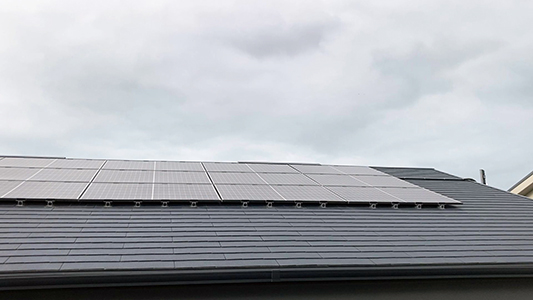 →(旦那様)ZEH(ネット・ゼロ・エネルギー・ハウス)ということでソーラーパネルを載せていますが、 ソーラーパネルと蓄電池で電気代もトータルで見たら安くで済んでいます。