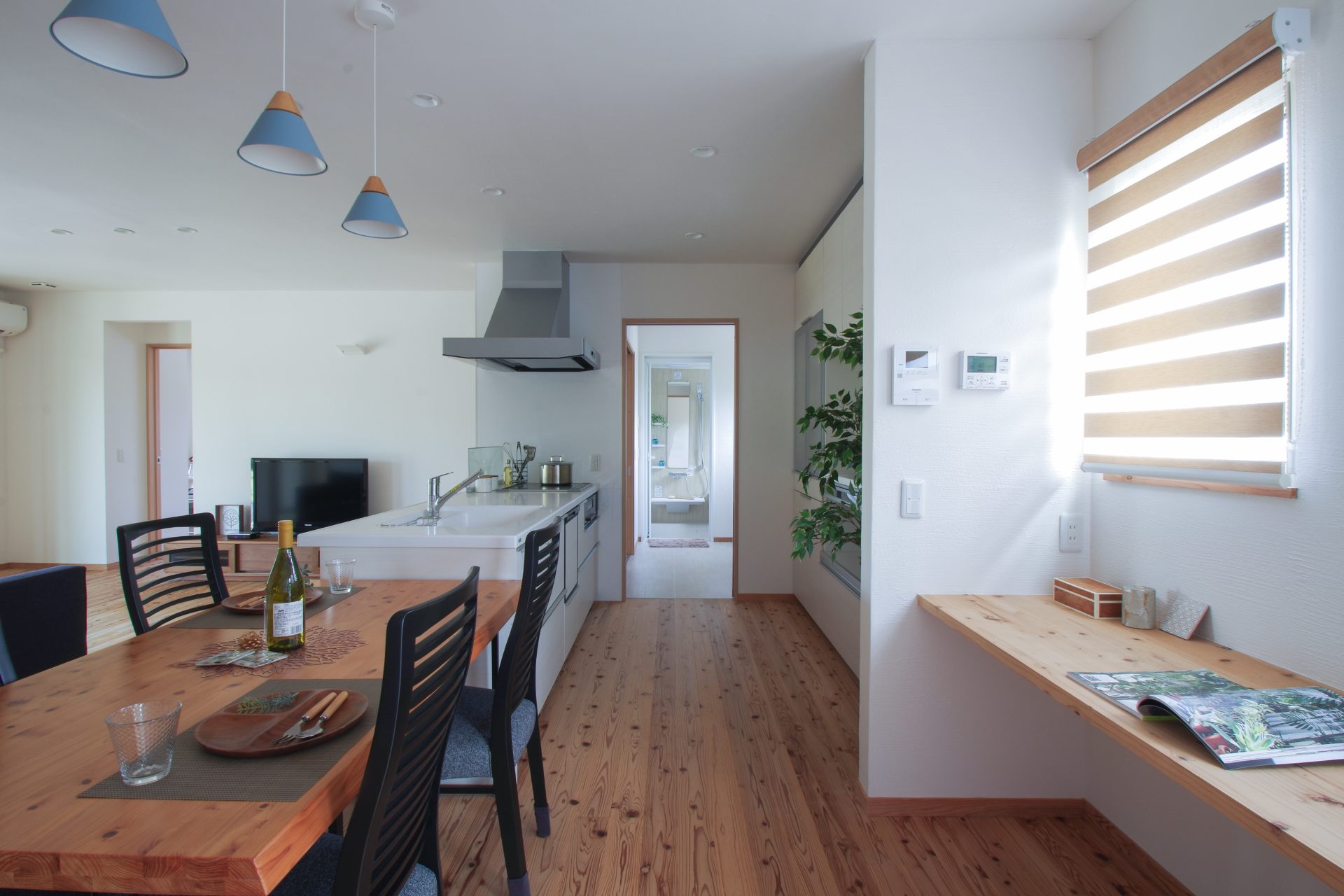 来客が多いお施主様のライフスタイルを踏まえ、玄関から和室へと直接上がれたり、ダイニング・キッチンから洗面・浴室といった水回りを一直線に配置したり、家の各所の動線を考え抜いた設計にすることで、日々の家事や暮らしを楽にする工夫をしています。