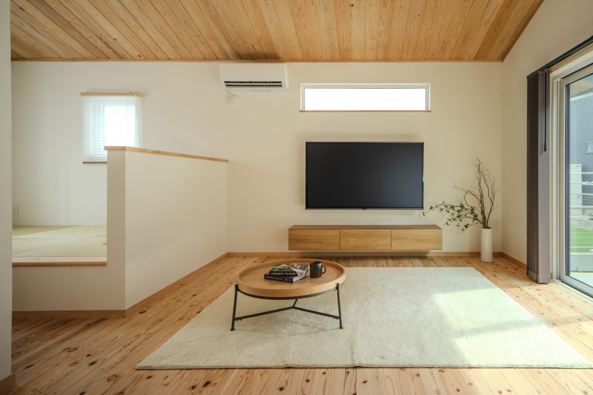 小上がりの畳スペースで寛ぐ、安らぎの家