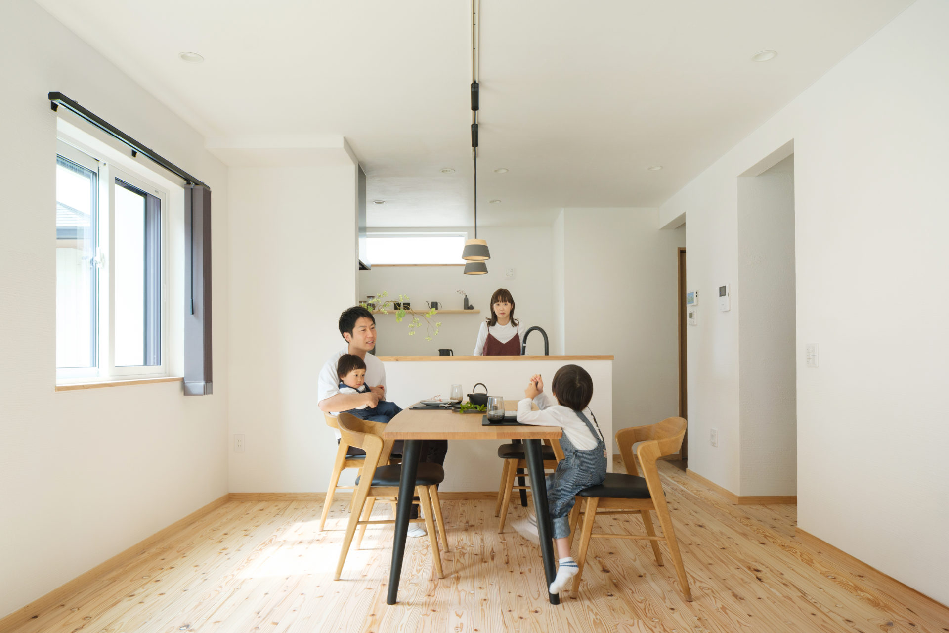 20畳のLDKには、のんびりくつろげる小上がりの畳スペースを設けるなどメリハリの効いた空間に仕上げています。